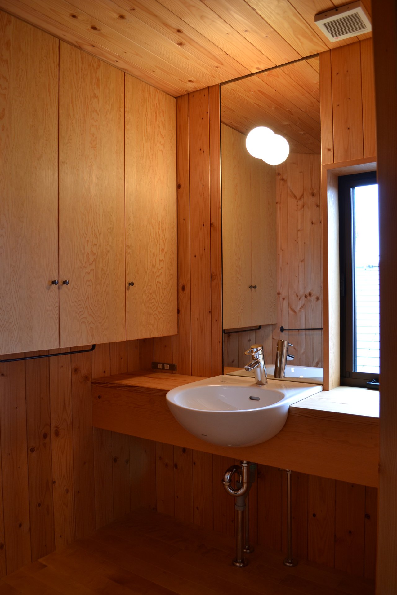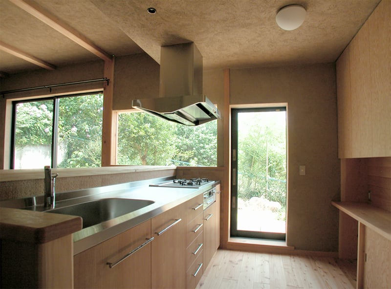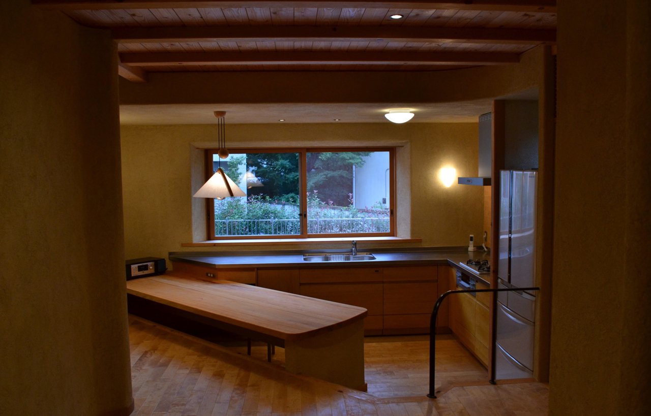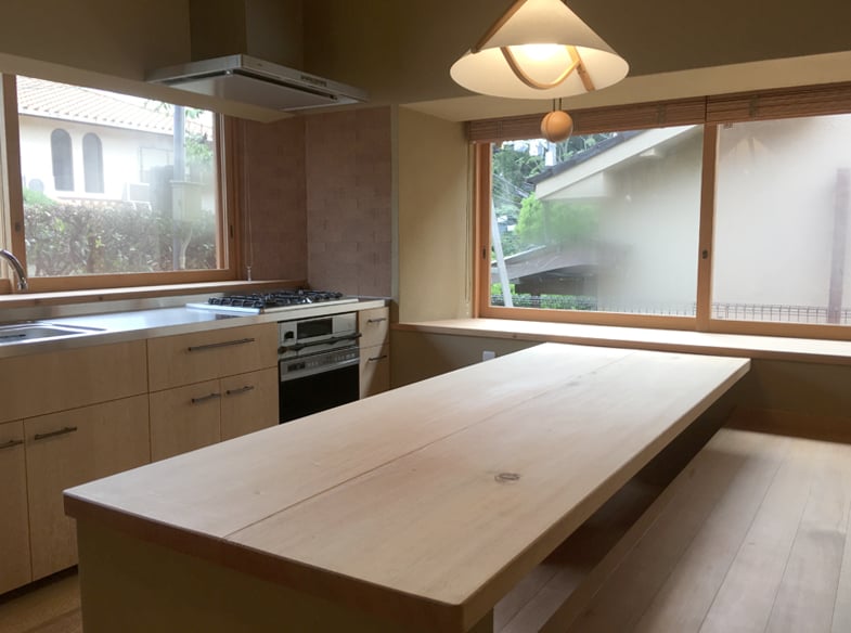 床はカバ桜の無垢板。床暖房を入れて、浴室以外の水廻りを一新しました。