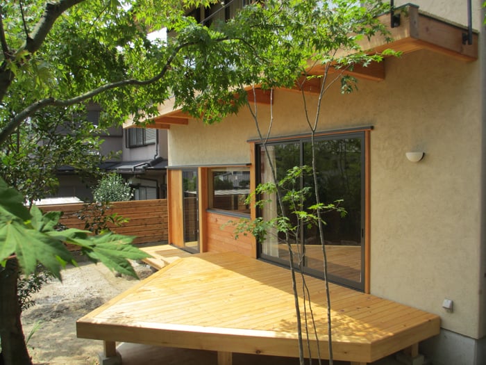 デッキと庭に繋がり、開放的で快適な生活を楽しめるように考えました。