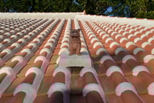 素焼きの琉球瓦がフク木の緑に映え、強風に耐えるように塗り固めた漆喰の白が眩しいです。