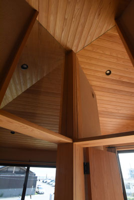 原寸大の構造材の模型を使い亀井棟梁に木組みを実演していただきました。木構造をわかりやすく、と作成した動きのあるスライドも同時に見てもらうことが出来て、とても好評でした。(梅田)